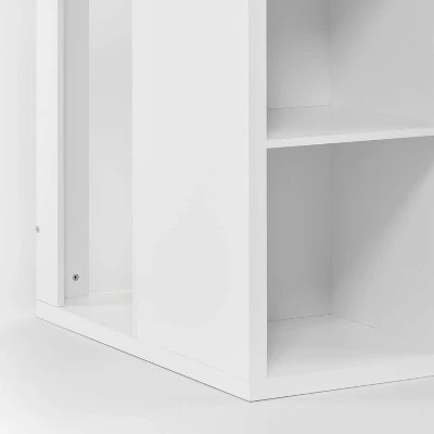 Make the most of your space by storing and displaying items on this 4-Cube Corner Organizer from Brightroom™. The space-saving design maximizes corners with room for bins, baskets, books, plants and more, and is compatible with items in the Brightroom 13″ Storage Collection. This organizer furniture piece is finished front and back and has a white hue that adds a clean, modern element to your home, whether you use it in your living room, home office, bedroom or any other space.