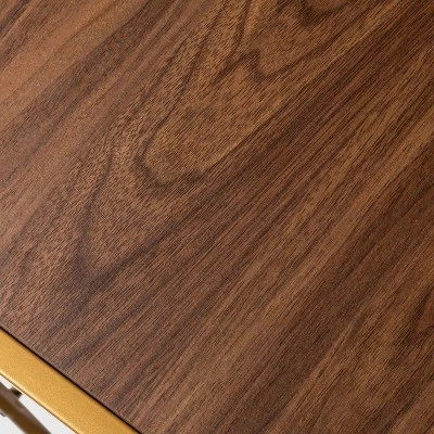 Revamp your entryway or any other space with the functional style of this 4-Tier Shoe Rack Brightroomâ„¢. Constructed with a brass-finish metal frame and walnut wood top for warm style, this shoe rack has thin metal rod shelves for an airy look. The three built-in shelves provide enough space to store multiple pairs of shoes, while the rectangular top can be used to store your bags and other accessories. Simply place it against a wall in your mudroom or inside a bedroom closet to enjoy easy access to your footwear.