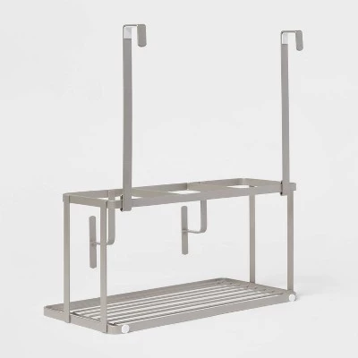 Keep your bathroom cabinet space tidy and organized with the help of the Hair Care Organizer from Brightroom™. It comes in a streamlined, modern design made of steel that matches easily with just about any decor, so you can easily coordinate with whatever bathroom decor you may already have. This organizer is great for storing shampoos, conditioners and other hair care products. It also includes a hook that can be used for hanging combs. This organizer hangs on a cabinet door and one size fits most.