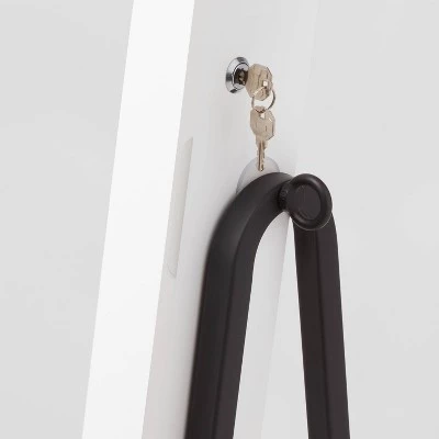 So many ways to organize your way with the Accessory Organizer with Mirror from Brightroom. Offering ample storage space for rings, earrings, necklaces, bracelets and more. Built-in adjustable, tilting mirror provides customization to your space. Includes a base shelf for extra storage. Versatile styling in a black and white finish easily matches with a range of decor styles. Best of all, the included hardware makes self-assembly a breeze. Follow installation and capacity guidelines. It is normal for produced goods to have a slight odor as part of production, for best results open the cabinet door to dissipate in open air.
