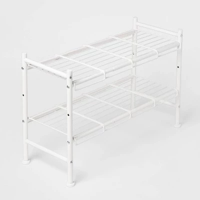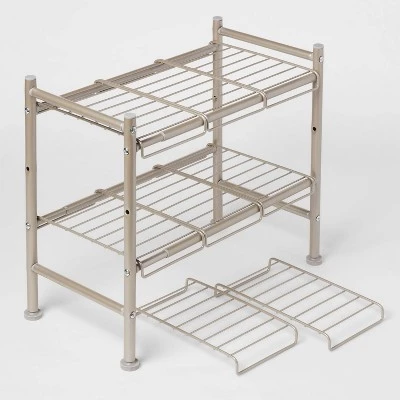 Easily store and organize your bathroom essentials with this Under-the-Sink Expandable Storage Shelf from Brightroom™. This expandable storage shelf provides the convenience and versatility of two shelves of storage for your bathroom, kitchen, pantry or laundry room cabinet, and keeps items conveniently out of sight. The steel frame with a black, white or gray finish offers lasting use, and the open design makes it easy to pull items out and keeps them dry. Create usable storage space in unlikely places with this under-the-sink expandable storage shelf.
